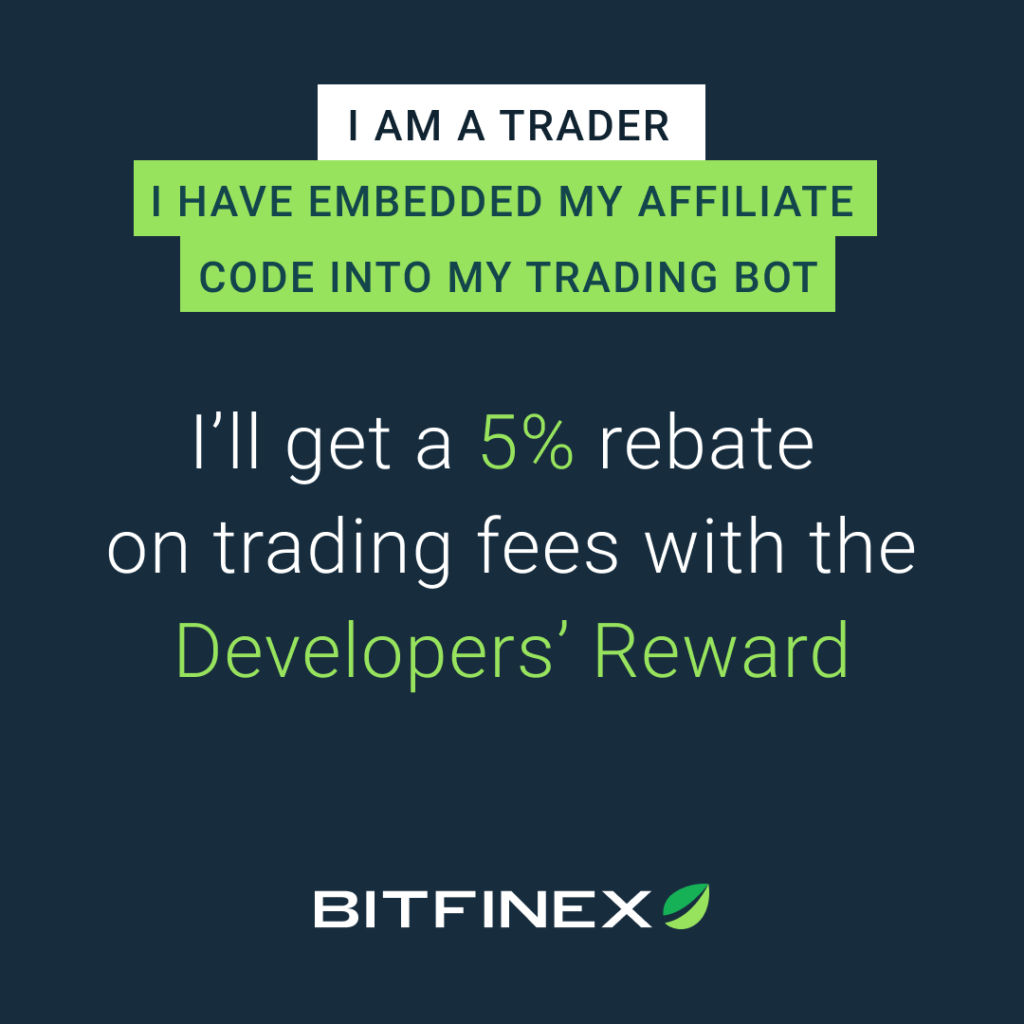 The Developers’ Reward generates a 5% rebate on every trade made through Bitfinex APIs.