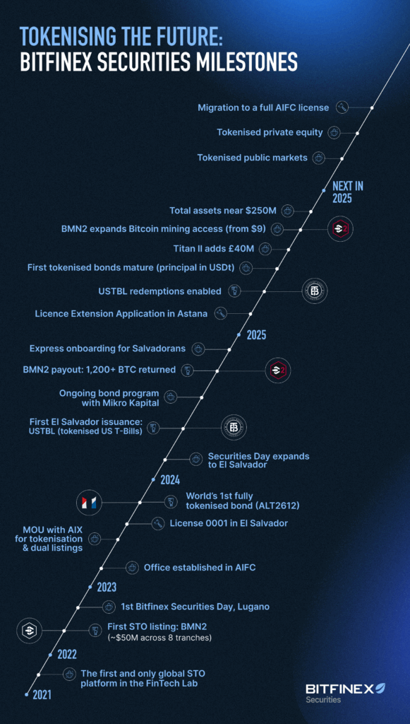 Bitfinex Securities Approaches $250 Million Tokenised Securities Milestone and Sets Out Plans to Attain Full Astana International Finance Centre Licence