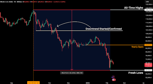 Kể từ sau cú sập đáy thấp nhất ngày 10/10, sự kiện đánh dấu đợt thanh lý lớn nhất lịch sử crypto, thị trường đã chính thức bước vào giai đoạn downtrend.