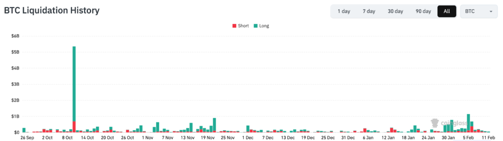 Góc nhìn thị trường phái sinh, chúng tôi cho rằng diễn biến của thị trường giao ngay hiện quan trọng hơn. Lượng hợp đồng mở trên các sàn phái sinh đã giảm mạnh từ mức đỉnh lịch sử 92,4 tỷ USD xuống còn khoảng 44,7 tỷ USD. Mức phí giữa bên mua và bên bán phần lớn đang ở trạng thái trung tính hoặc âm đối với các tài sản số lớn. Vì vậy, dù ngày 5/2 ghi nhận mức giảm mạnh nhất trong hơn ba năm (-14,04%), tổng giá trị các vị thế bị thanh lý thực tế lại không quá lớn như nhiều người có thể kỳ vọng.
