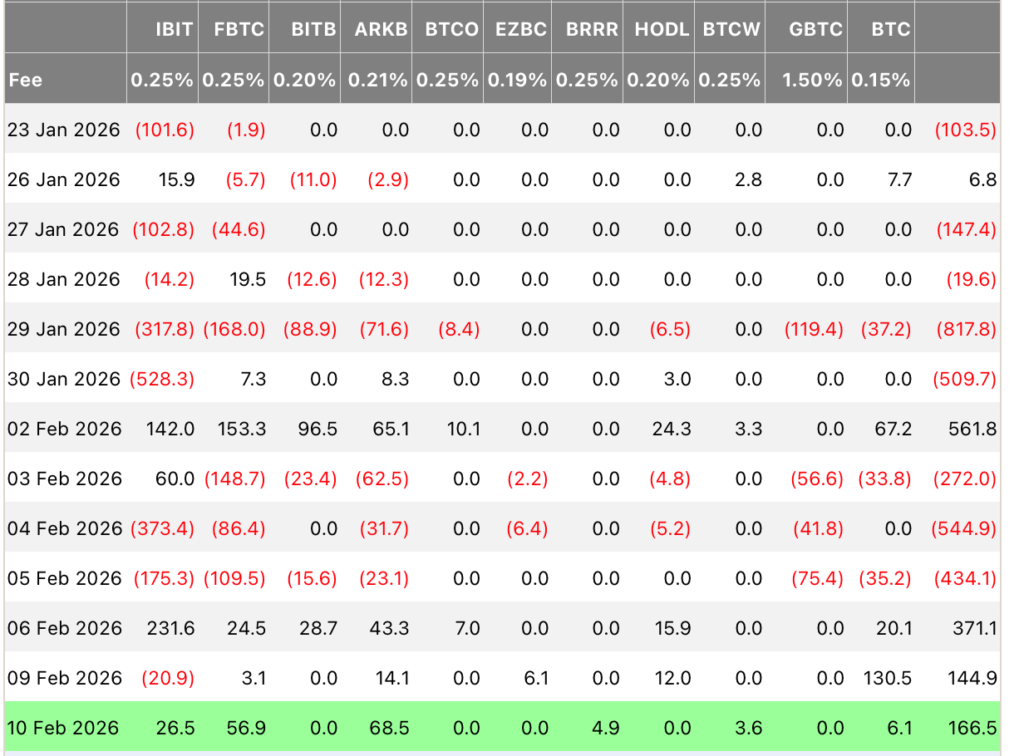 Áp lực bán còn gia tăng do dòng vốn rút mạnh khỏi các quỹ ETF Bitcoin tại Mỹ trong cùng giai đoạn. Kể từ tháng 10, các quỹ ETF nhìn chung ở trạng thái bán ròng. Tổng lượng vốn tích lũy kể từ khi ra mắt từng đạt đỉnh vào cuối tháng 10 ở mức 62.700 BTC, nhưng hiện đã giảm xuống còn khoảng 54.300 BTC. Dù thỉnh thoảng vẫn có những phiên dòng tiền vào trở lại, xu hướng chung vẫn là rút vốn đều đặn ở hầu hết các đơn vị phát hành, cho thấy mức độ quan tâm đến việc nắm giữ Bitcoin thông qua ETF đang suy giảm.