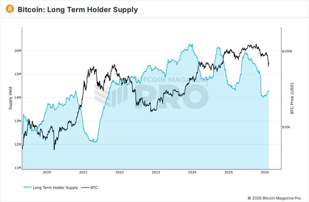 Thông thường, lượng nắm giữ của nhóm đầu tư dài hạn là chỉ báo đi trước biến động giá, vì quá trình gom mua thường bắt đầu ở giai đoạn cuối của xu hướng giảm. Trong các chu kỳ gần đây, khi chỉ số này tạo đỉnh mới, giá Bitcoin thường phản ứng sau đó khoảng 3–4 tháng.