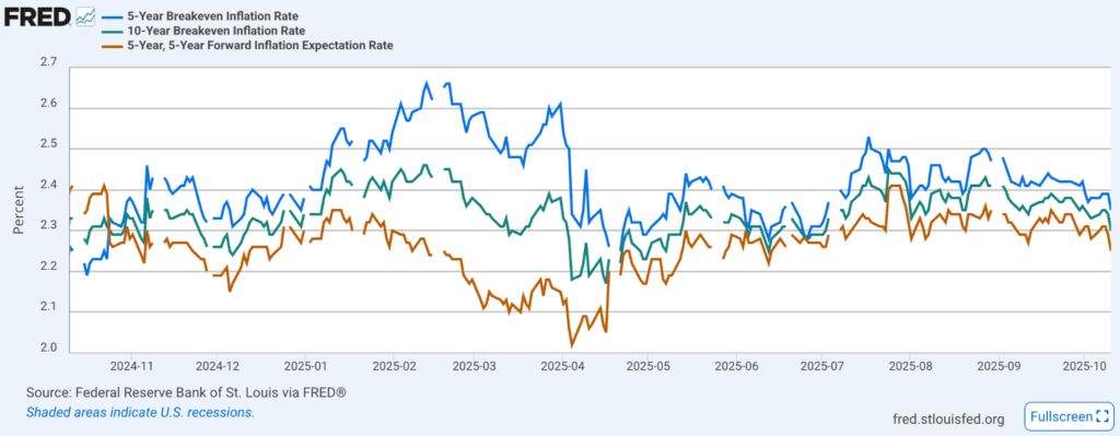 儘管財政僵局持續,金融市場仍展現出韌性。隨著投資人轉向避險,公債殖利率出現下滑,而近期美國公債拍賣的熱烈反應也顯示長天期資產的需求依然強勁。信貸市場同樣表現穩健,投資級與高收益債的利差均維持在近兩年低點附近,顯示投資人信心穩定,對違約風險的擔憂有限。