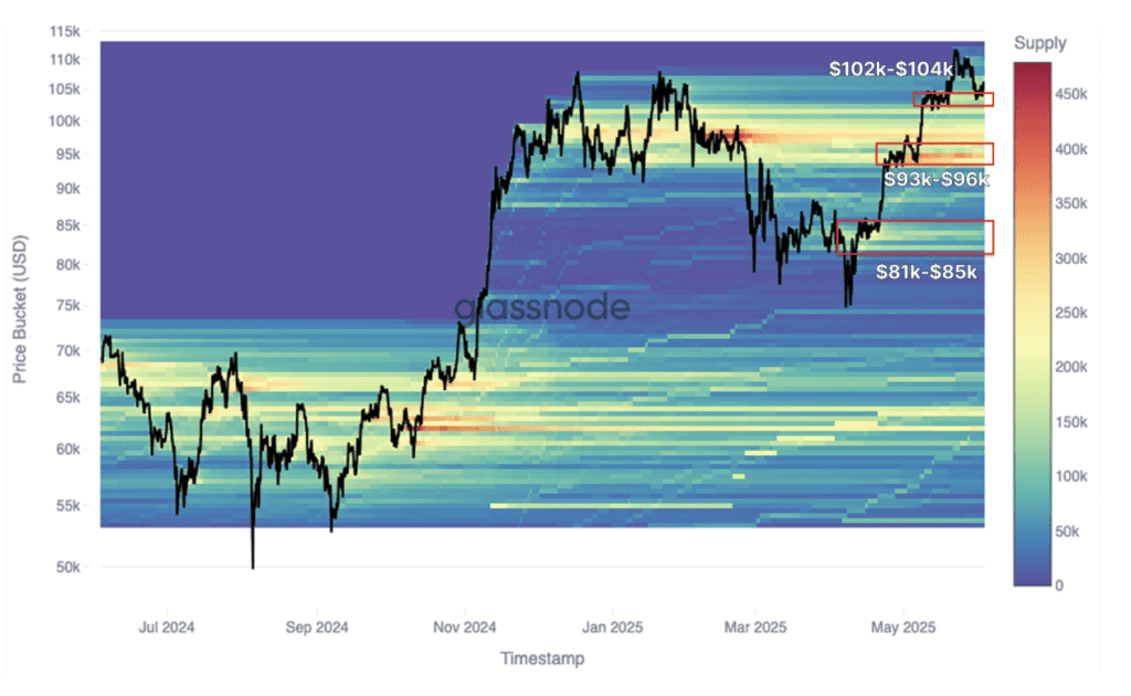 A textbook run-up in Bitcoin fuelled by strong spot demand, profit-taking by long-term holders and a resurgence in macro risk have combined to pull the asset back over 10 percent from its all-time high. The final leg of the decline on June 5th saw over $875 million in long liquidations in a single day—highlighting the extent of deleveraging. With over $1.9 billion in total liquidations across the past week, leverage has now been forcefully reset. Technical structure shows that BTC’s ascent was underpinned by genuine demand, as shown by a spot-led stair-step rally, with key accumulation clusters forming at $93,000–96,000, and $102,000–104,000.