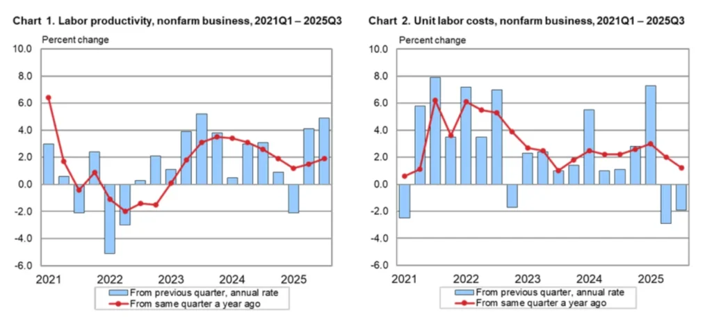 The labour market is showing a clear hiring pause, as job creation has slowed markedly while unemployment remains low, reflecting a “slow hire, no fire” environment in which firms retain workers but avoid adding headcount. Rising productivity is allowing businesses to sustain output and margins with fewer hours worked, reinforcing expectations that the Federal Reserve will keep rates unchanged in the near term while remaining cautious about easing later in the year.