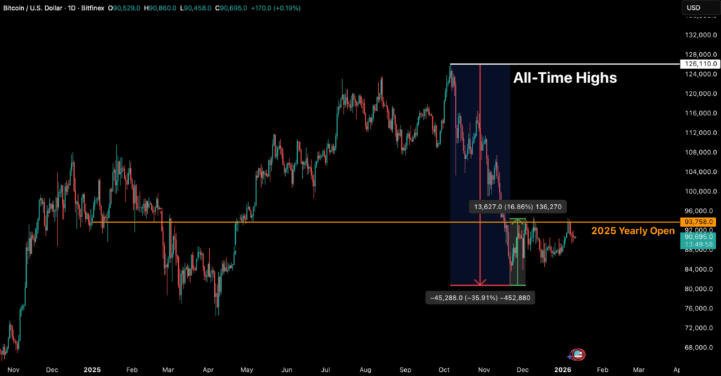 While the medium-term outlook for 2026 remains constructive amid expectations of improving global liquidity, near-term price action is still capped by geopolitical uncertainty, mixed ETF flows, and the need for a clear acceptance above this resistance band to shift market structure decisively higher.