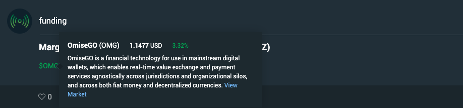 Cashtags show a brief explanation of the respective currency. Info, such as current price and description is available in a preview window when the cashtag is on hover. Using cashtags in your posts will help your followers to understand your content better, while at the same time, keep them updated with the latest price update, as they read through your pulses.