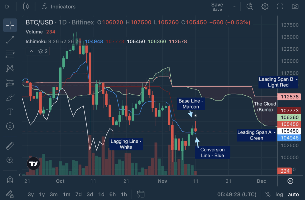 - Click Indicators → Ichimoku Cloud