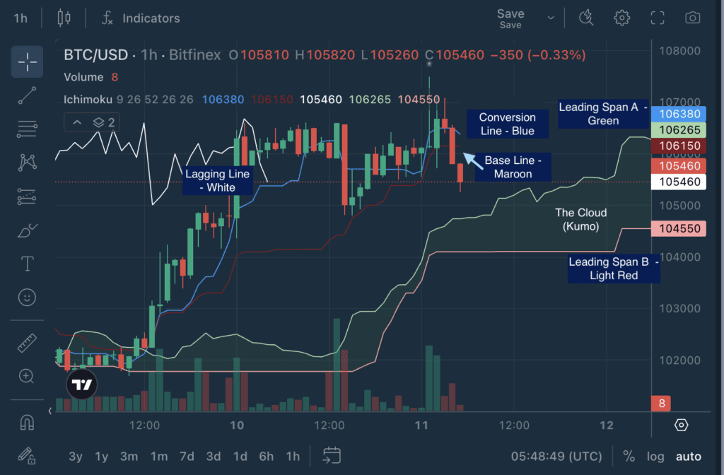 - Click Indicators → Ichimoku Cloud