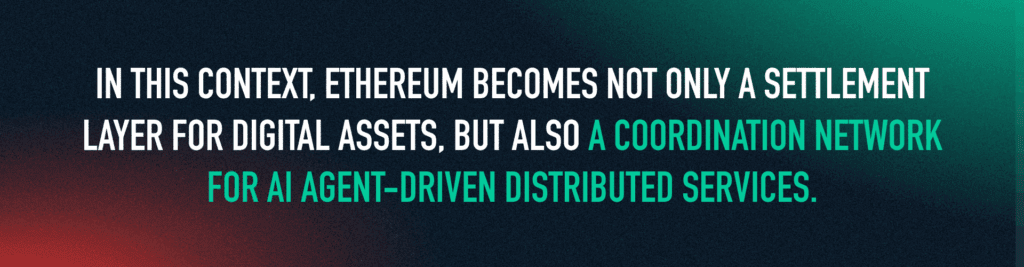 此模型對 Ethereum 與整體 Web3 生態而言具有重要意義,因為它能讓跨組織的自動化與服務協作在無需依賴中心化平台的情況下實現。使用者將不必仰賴少數大型 AI 供應商,而能根據功能、成本、聲譽或密碼學驗證自由選擇多樣化的代理;開發者則可依賴共享的信任基礎架構,而不需從零構建封閉系統,使代理生態更具互通性與可擴展性。在這樣的背景下,Ethereum 不僅是數位資產的結算層,更可能演化為以 AI 代理驅動的分散式服務協調網絡。