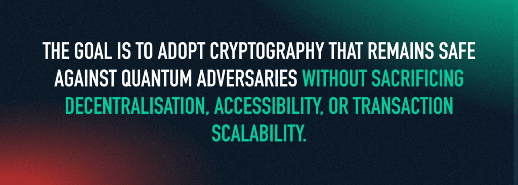 Mitigating the risk of future quantum attacks begins with planning for cryptographic transition well before large-scale quantum computers become practical. The first step is therefore to assess where and how cryptographic assumptions are used across a protocol, namely, key generation, signature schemes, hashing, address formats, and network messaging. Conducting this type of mapping allows developers and ecosystem contributors to identify the most vulnerable components and to prioritise which cryptographic primitives will require migration to post-quantum alternatives such as lattice-based or hash-based schemes.