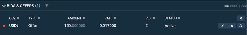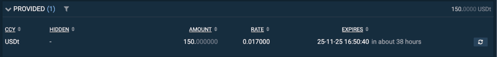 Once matched, you’ll be able to see the amount you are offering, the rate at which interest will be calculated, and when the funds are scheduled to return to you. Interest accumulates daily and is credited around 01:30 AM UTC.